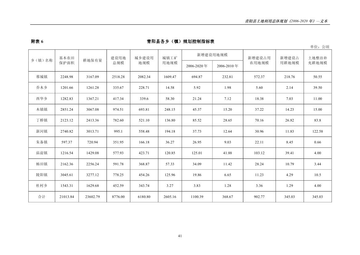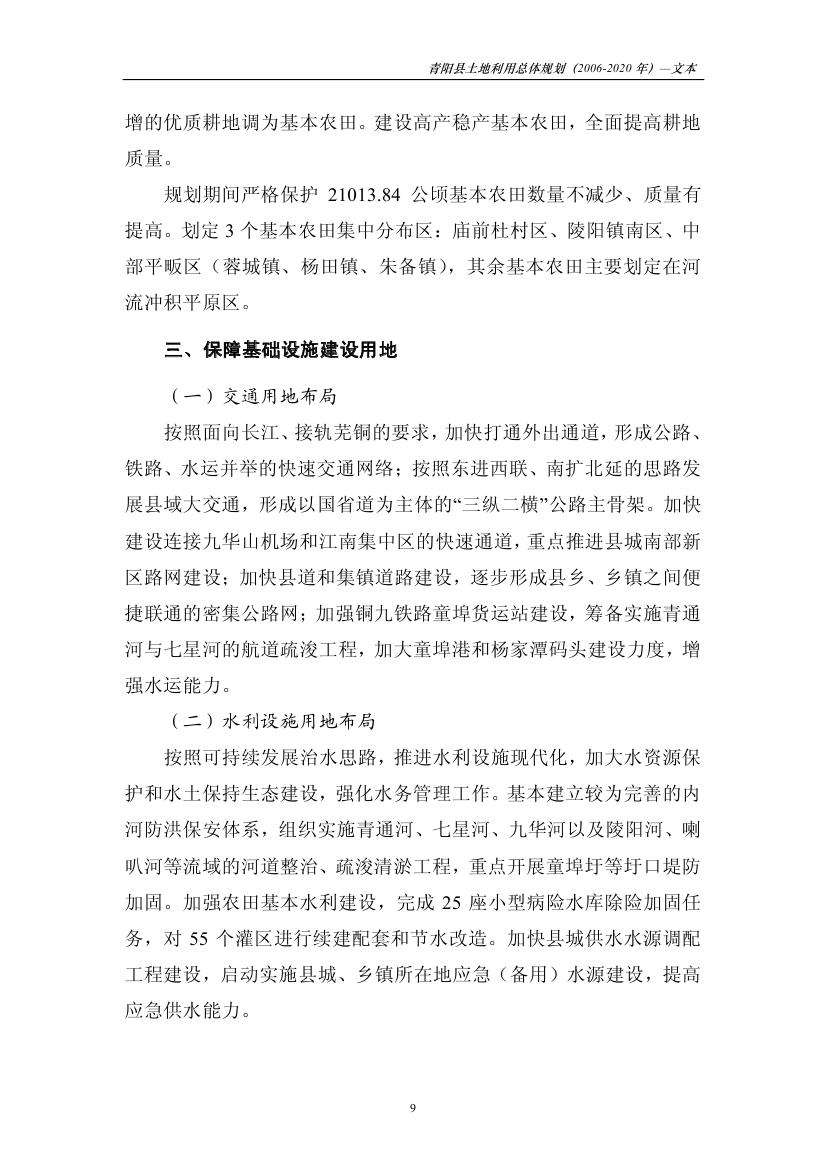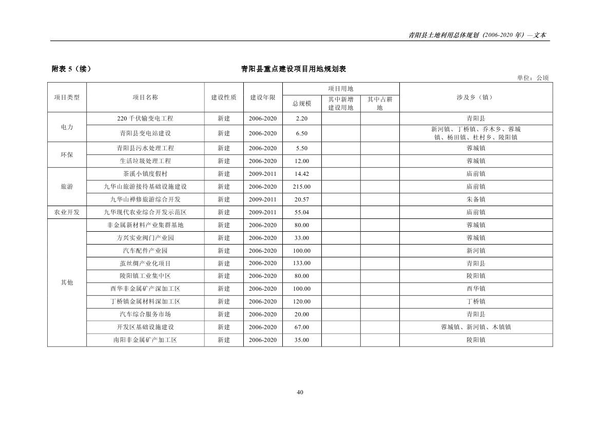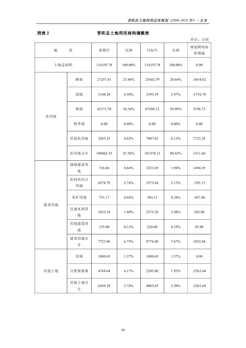標題: 青陽縣土地利用總體規劃(2006-2020年) 文號: