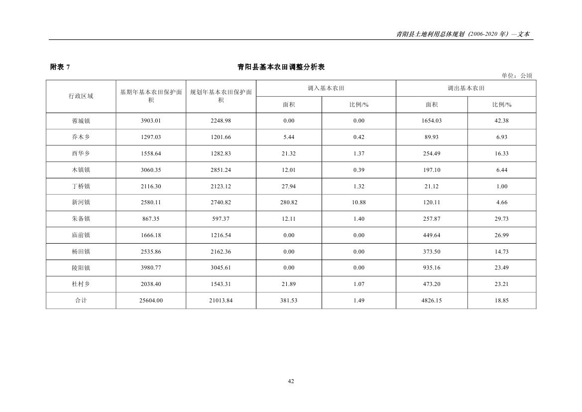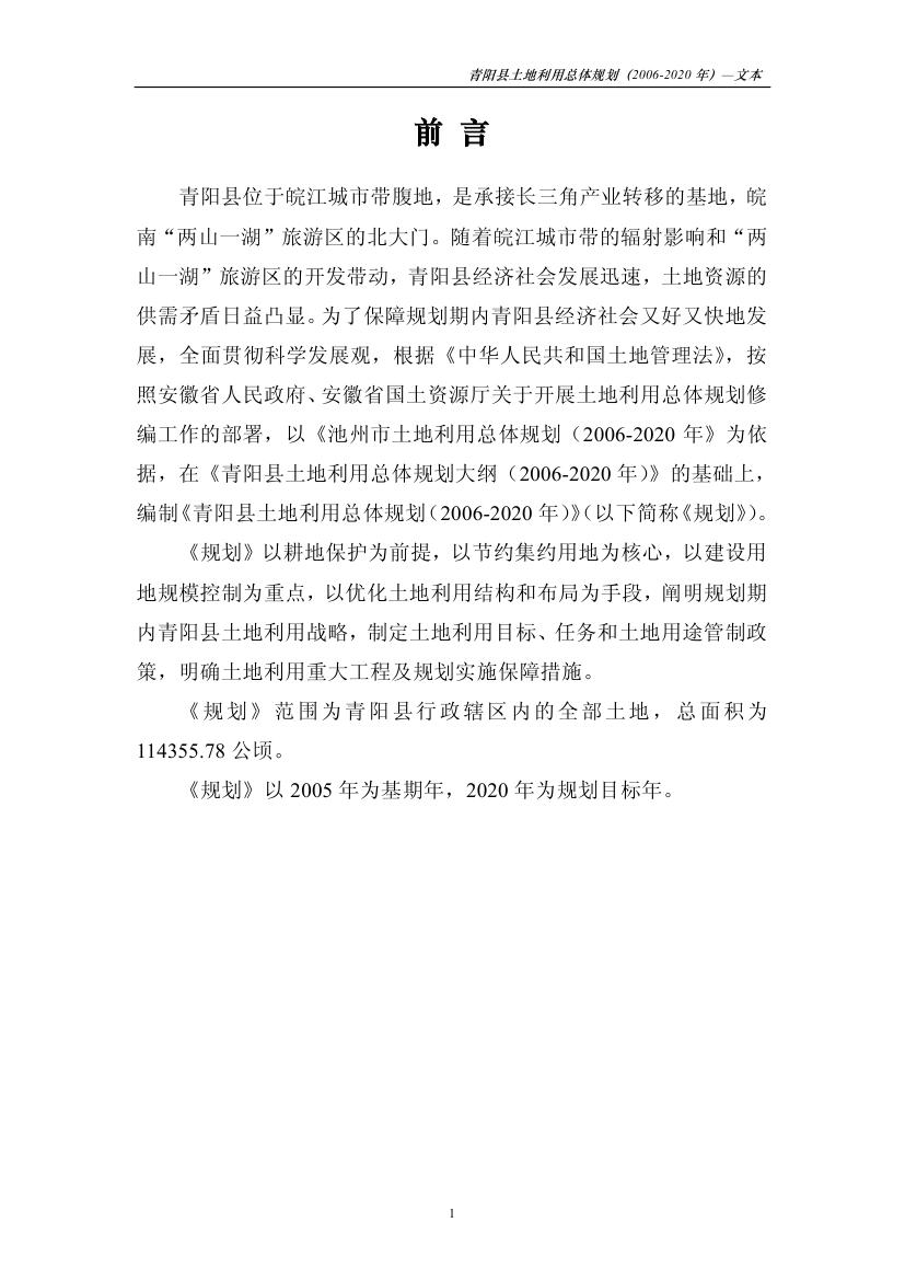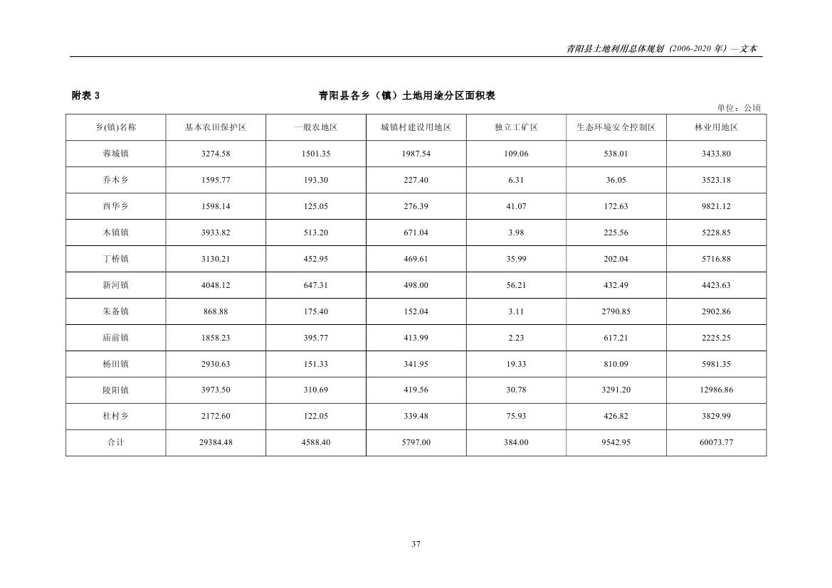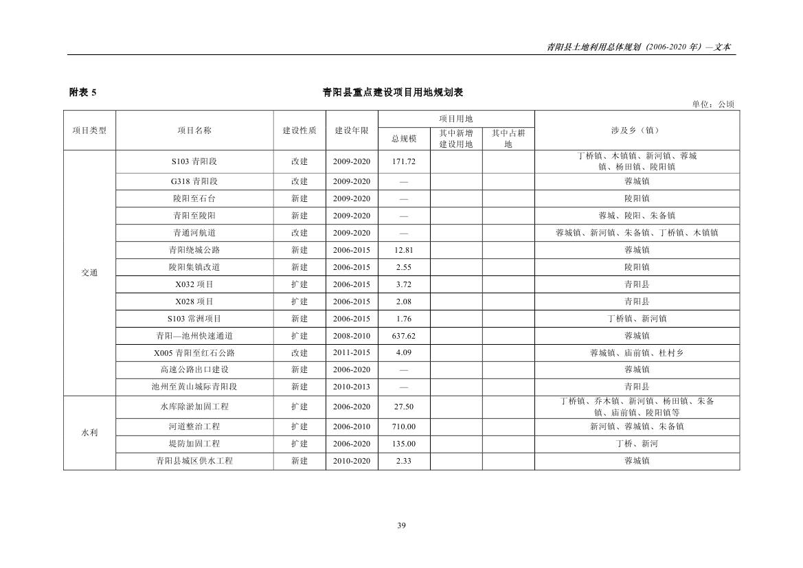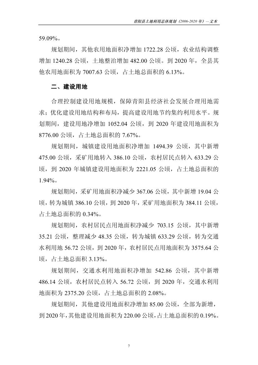 標題: 青陽縣土地利用總體規劃(2006-2020年) 文號: